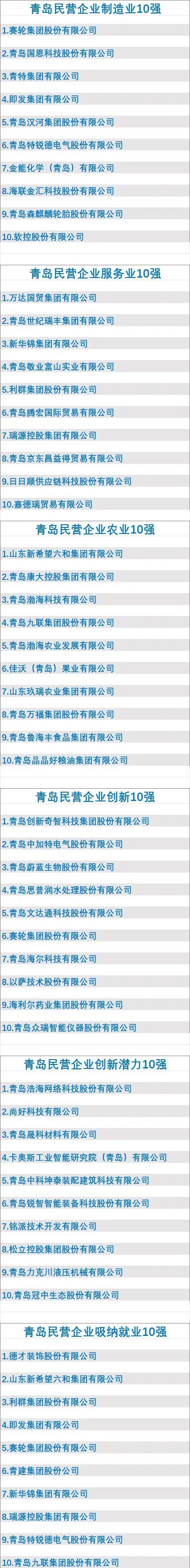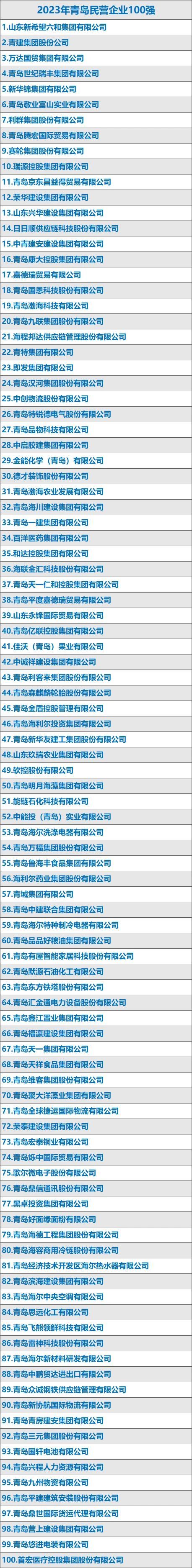 今年以来,青岛从市场准入、营商环境、减税降费、融资支持等方面出台系列政策举措,为民营经济和民营企业发展壮大提供了有力支持。在“亲清”政商关系和不断优化的营商环境的“阳光雨露”照耀滋润下,青岛民营经济不断焕发新的生机与活力。本次2023年青岛民营企业100强系列榜单的发布,不仅是一次对营商环境建设成果和民营经济发展成就的展示,更将在全市凝聚崇尚创新创业正能量,激励更多民营企业竞相向上向善向好发展的内生动力,激发民营企业家自觉践行社会主义核心价值观,做爱国敬业、守法经营、创新创业、回报社会的典范,为青岛奋力建设新时代社会主义现代化国际大都市做出新的更大的贡献。